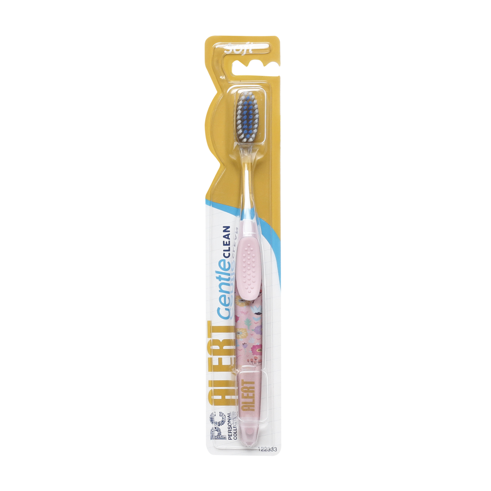 Get dual power in oral care with Alert Gentle Clean Toothbrush. Its soft bristle technology not only cleans teeth, it cleans the gumline too.